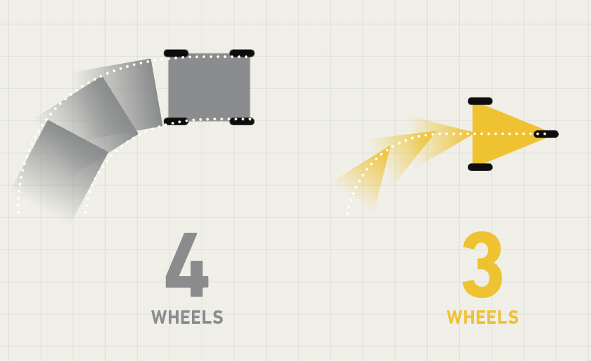 段差や凸凹道でもスムーズに乗り越えられ、方向転換も軽やか。